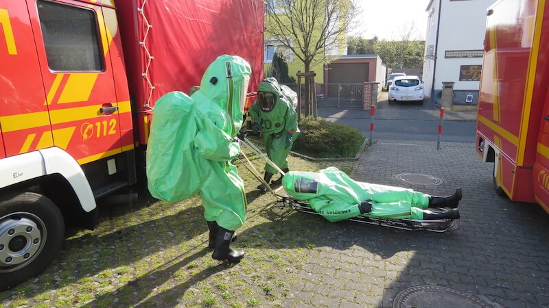Die Feuerwehr Rodgau bildet vom 07.-09. April insgesamt 18 Teilnehmer, davon 4 Kameraden aus Rödermark, aus. Unter den Teilnehmer befinden sich auch 4 Frauen, die sich ebenfalls der belastenden Aufgabe stellen. Als Ausbilder stehen Michael Gröschl, stellv. Stadtbrandinspektor, Markus Beck, stellv. Stabsstellenleiter, Peter Riedel, Mitglied Feuerwehr Rodgau Nord und beruflich Ausbilder im Gefahrgutzug der Berufsfeuerwehr Frankfurt, sowie Patrick Moller, Mitglied Rodgau Nord und Mitarbeiter bei der Flughafenfeuerwehr Fraport, zur Verfügung. Die Ausbildung findet am Feuerwehrstandort Nord (Weiskirchen) statt, da auch hier die speziellen Geräte für Gefahrguteinsätze stationiert sind. Zunächst findet am Donnerstag und Freitag Abend ein Unterricht statt, welcher mit einer schriftlichen Prüfung endet. Dem Teilnehmer werden Inhalte wie der Aufbau der Schutzanzüge, ihre Schutzwirkung, aber auch Notfallmaßnahmen erklärt. Der Samstag widmet sich dann den ganzen Tag mit der praktischen Ausbildung. Hier geht es um das richtige An- und Ablegen der Anzüge, welche im Feuerwehrjargon CSA genannt werden. Es folgen mehrere Übungen unter dem CSA, wie sie auch bei Gefahrguteinsätze getätigt werden müssen. Am Nachmittag finden die Übungen unter fachlicher Aufsicht statt, da dies dann zur praktischen Prüfung zählt. Als krönenden Abschluss müssen sich die Einsatzkräfte mit dem CSA in eine Dusche begeben, welche an einem Fahrzeug der Feuerwehr Rödermark angeschlossen ist. Dies dient der Reinigung von chemischen Stoffen, so wie es im Ernstfall auch geschehen würde. Nach erfolgreichem Abschluss aller Prüfungen erhalten alle Teilnehmerinnen und Teilnehmer eine Urkunde, welche sie künftig dazu befähigt, unter einem Chemie-Schutz-Anzug eingesetzt werden zu können und das bundesweit, wenn sie mal zu einer anderen Feuerwehr wechseln.